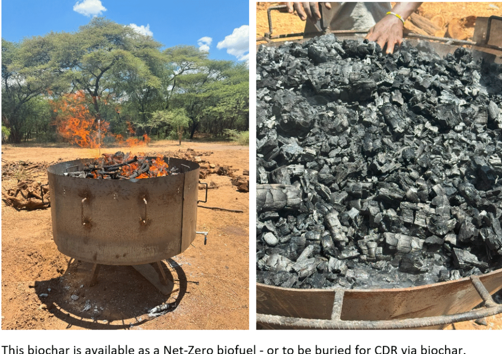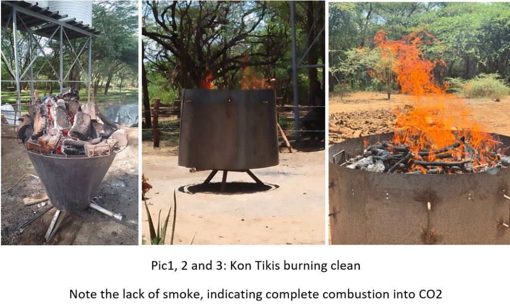 We make biochar using clean-burning Kon Tiki Kilns, reducing CH4 tremendously, and reducing CO2 emissions as well, when compared to the traditional methods of making charcoal-biochar.